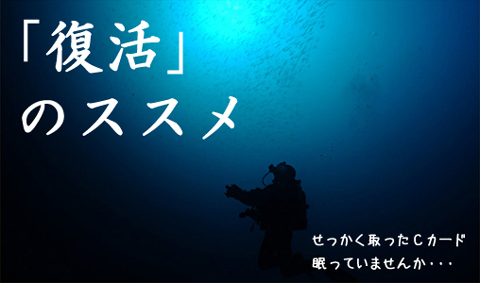Cカードは取ってみたものの、様々な理由で長い間海から遠ざかってしまった。また潜ってはみたいけれど、不安の方が先に立ってなかなか踏み出せない。そんな「ブランクダイバー」の方はいらっしゃいませんか?